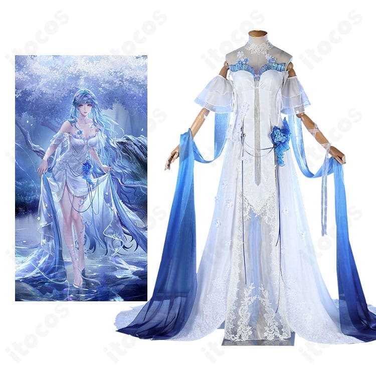 ワンピースを主軸に、透明ストラップや首飾り、足飾り、耳飾り、髪飾りなどをセットで構成。軽やかなコスプレ専用生地を採用し、長時間の着用でも動きやすく、スタジオ撮影やロケ撮でもシルエットが崩れにくいのが特長です。コミケや各種コスプレイベントはもちろん、ポートレート撮影や配信にも相性◎。