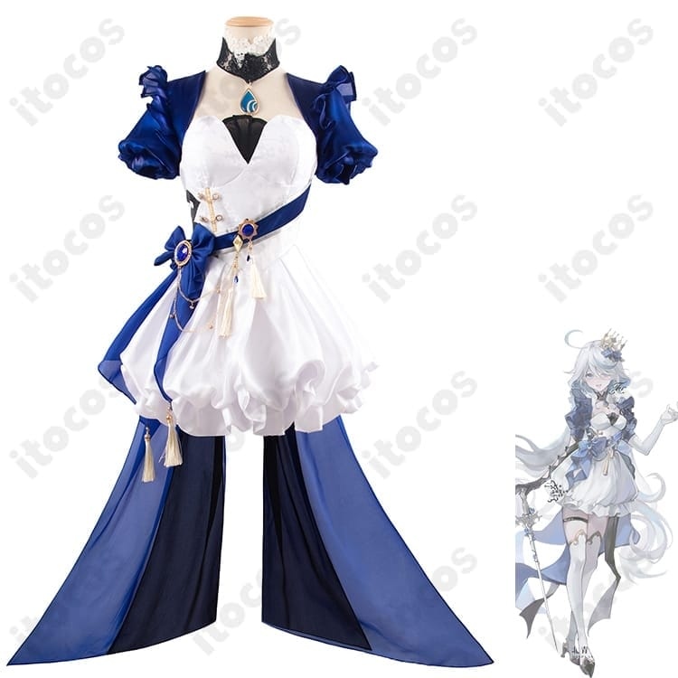 フリーナは、舞台の中央でスポットライトを浴びるような華やかさと、気まぐれに見えて目を離せない存在感が魅力のキャラクターです。そんな彼女らしさを、ふわっと甘い水色アリス風で写したい日に合う一着。公式でも“舞台”を思わせる演出が印象的で、フリーナの世界観と相性のいいスタイルです。