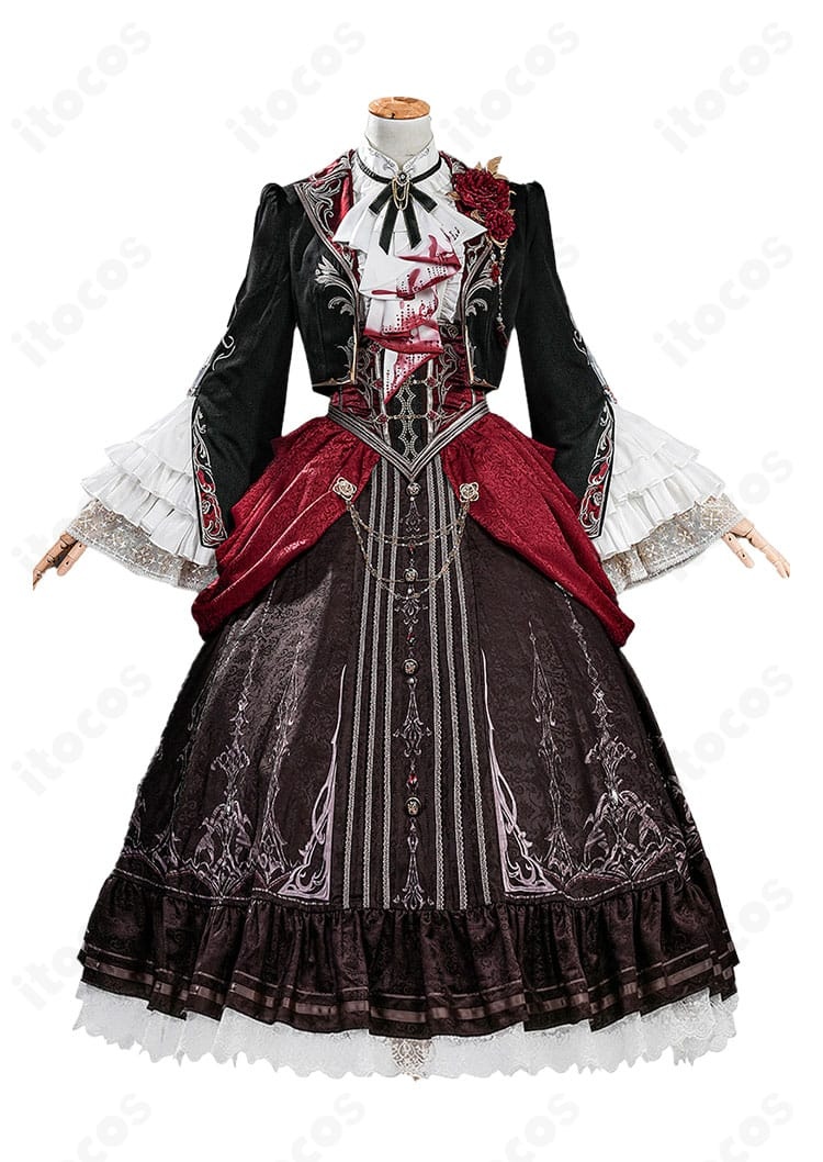 『恋と深空』の主人公は、まっすぐな想いと静かな強さをあわせ持つ存在。とくに「魂を約す赤月」衣装は、物語の余韻をそのまま纏うような、上品で印象的なデザインが魅力です。帽子とコートがつくる端正なシルエットに、コルセットベルトや蝶ネクタイ飾りがほどよい華やかさを添え、後ろ裾トレーンが立ち姿までドラマティックに見せてくれます。