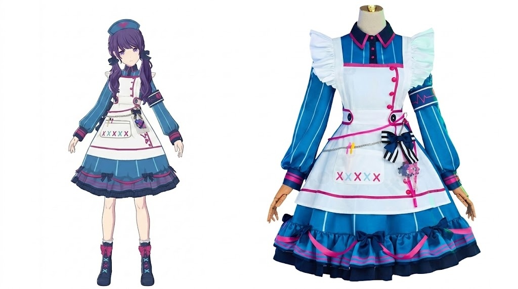 静かな表情の奥に、揺れる感情を抱えた朝比奈まふゆ。そんなまふゆの繊細な雰囲気を、やわらかな可愛さと少しミステリアスな空気でまとえるのが「猫耳おばけの案内人」衣装です。甘すぎず、でもしっかり印象に残るデザインなので、プロセカ併せ、ハロウィン、スタジオ撮影、配信、コミックマーケット参加まで幅広く使いやすい一着です。